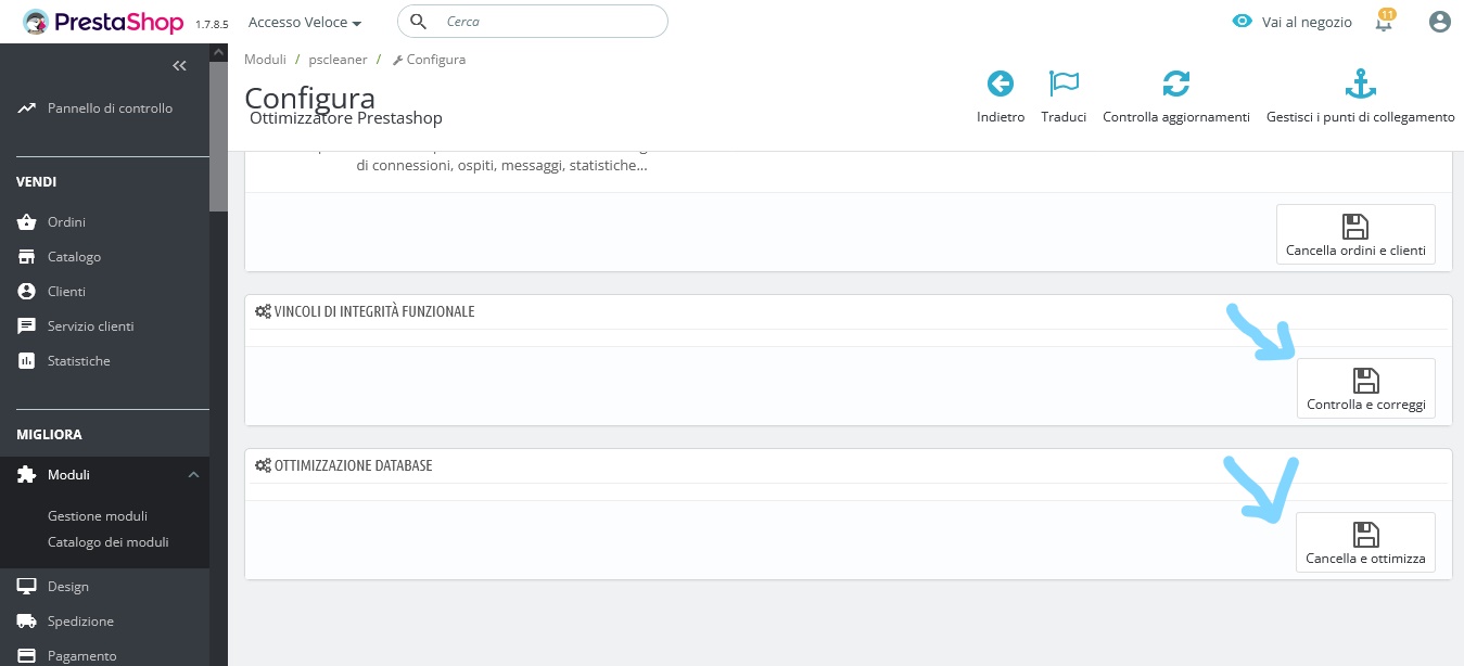 fatta sia a mano che tramite il modulo “ottimizzatore Pretashop” o “Prestashop clean” facendo molta attenzione,